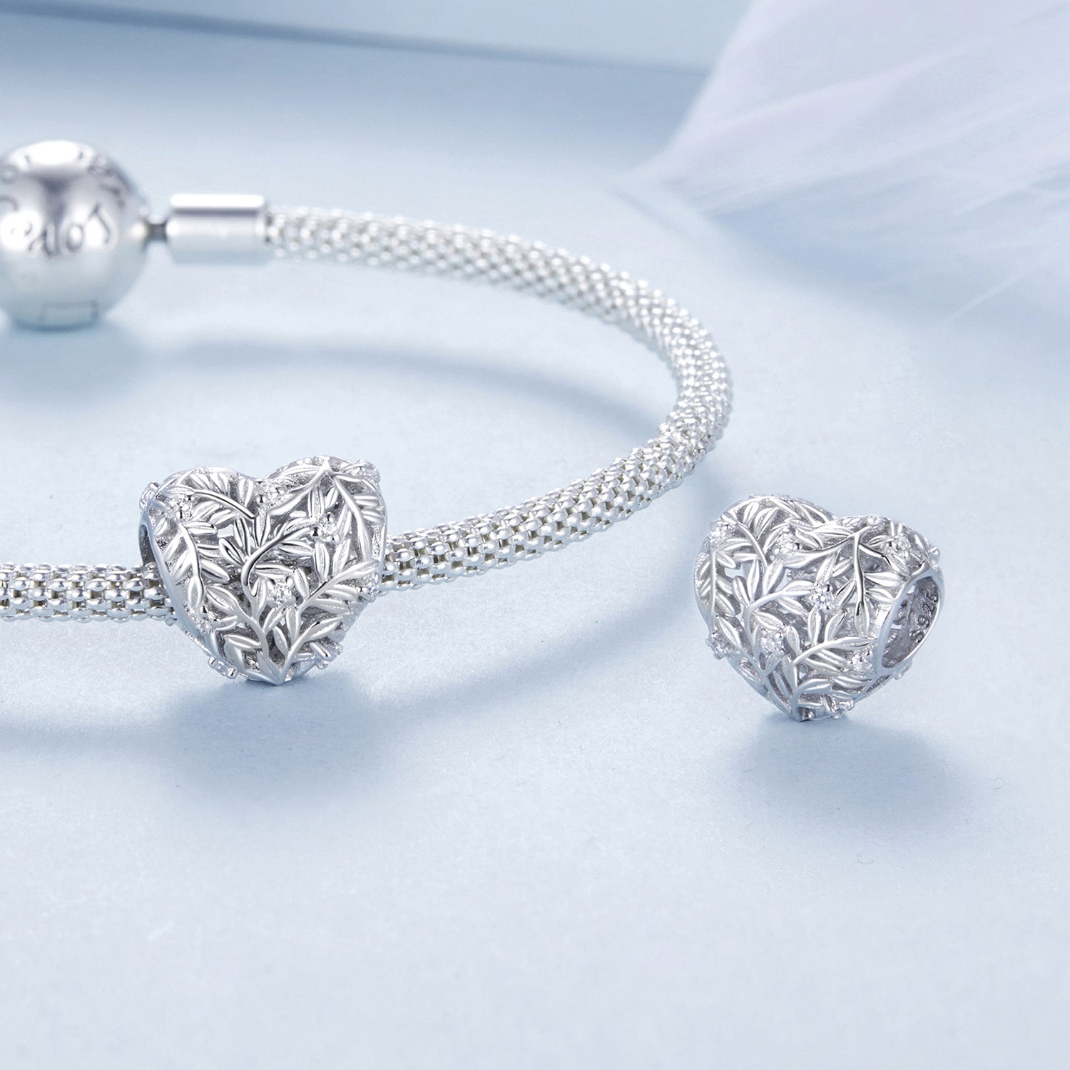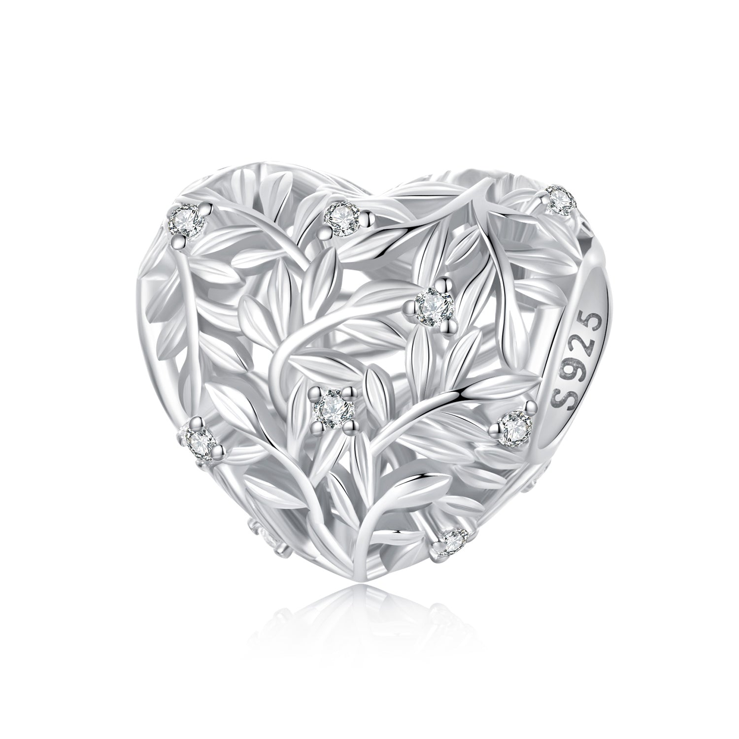 Un cuore che racchiude la bellezza e la forza della natura. Questo charm in argento sterling 925 è impreziosito da un elegante intreccio di rami e foglie finemente scolpiti, illuminati da piccoli zirconi incastonati come gocce di rugiada. Simbolo di crescita, armonia e amore per la vita, è il dettaglio perfetto per chi ama sentirsi in connessione con il mondo naturale. Raffinato e significativo, dona un tocco di poesia a ogni bracciale.