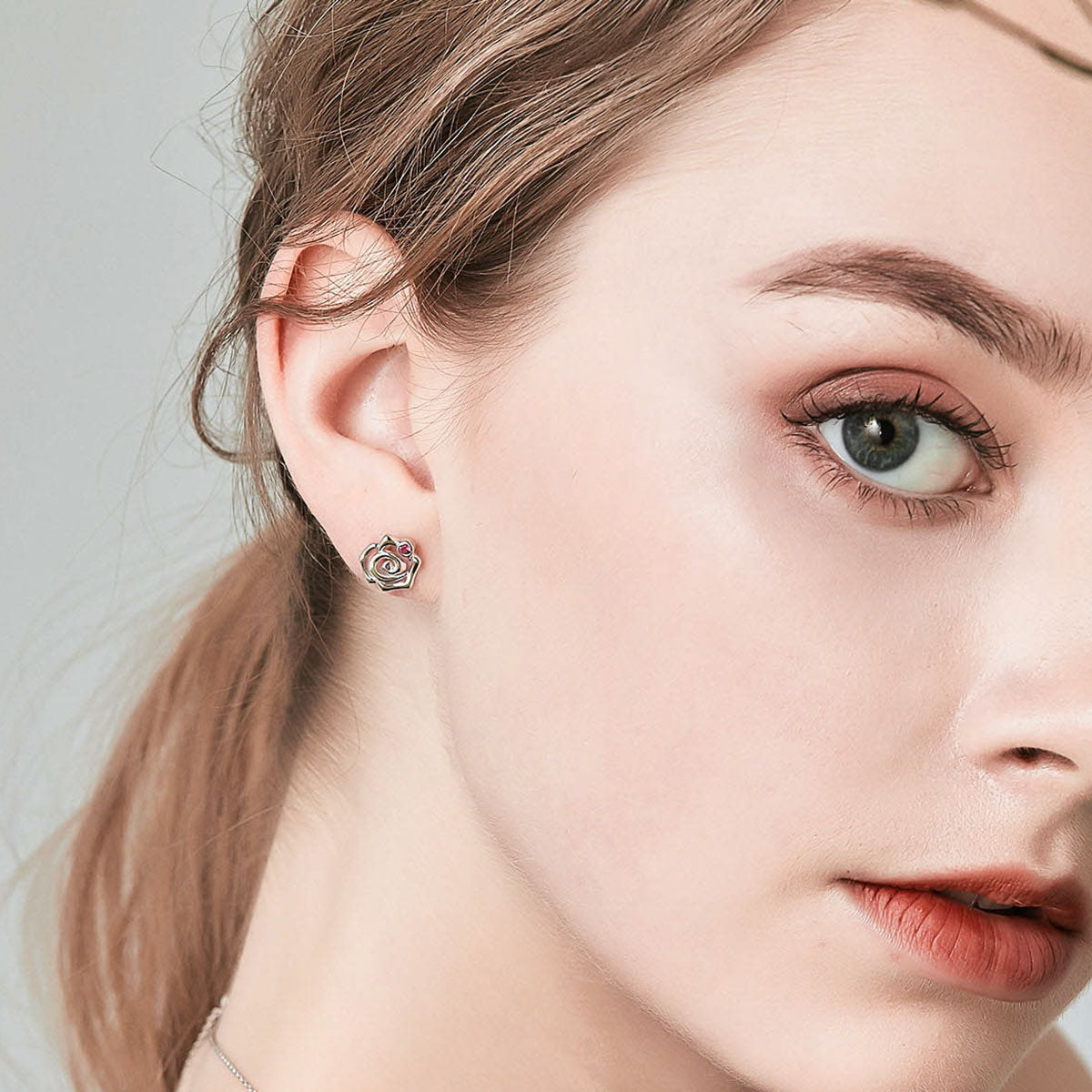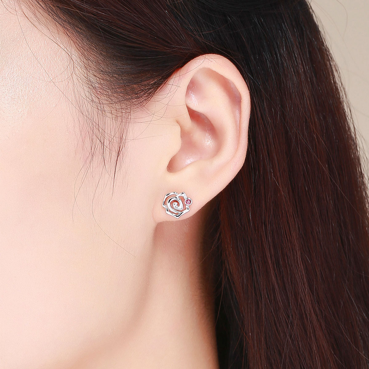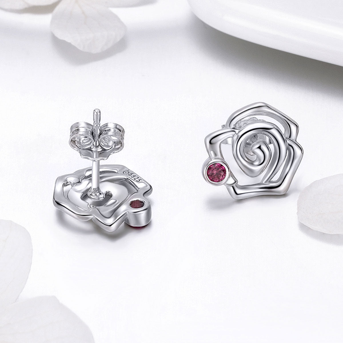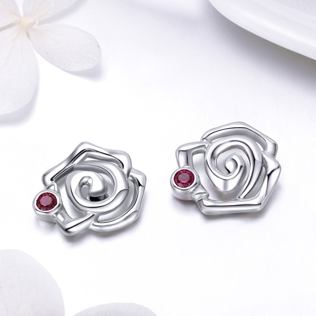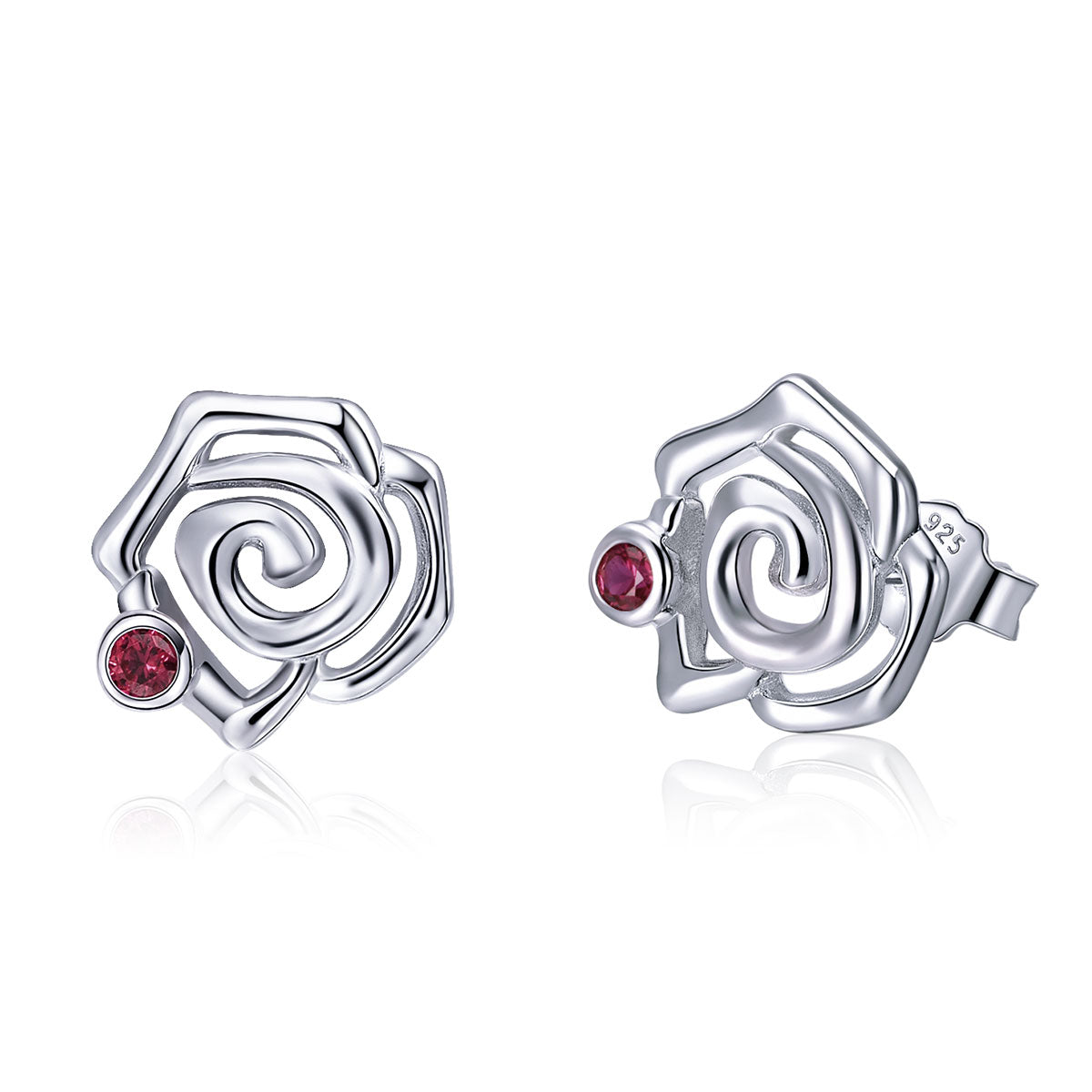 Un disegno moderno che rielabora la rosa in chiave geometrica, arricchita da un punto luce rosso acceso. La struttura a spirale dona movimento e leggerezza al design. Ideali per chi cerca un orecchino floreale ma non convenzionale. Un tocco artistico e romantico che valorizza ogni outfit con eleganza.